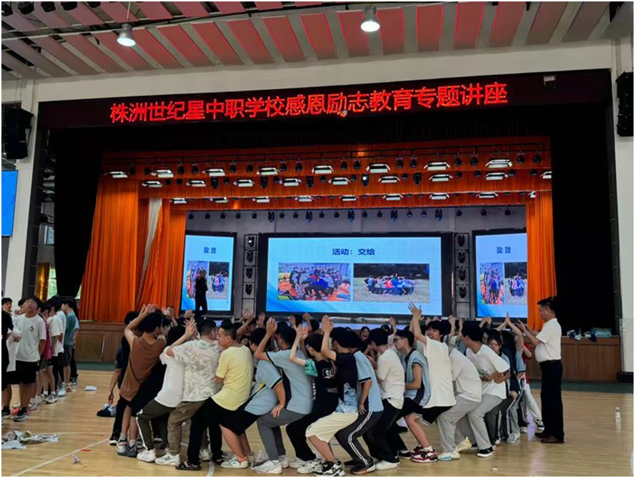 这次讲座通过分组游戏竞赛“放下自我”“交给”“报数”三个游戏。学生们在活动中感悟父母和老师的艰辛,引导学生懂得感恩,传承孝道文化、善待他人;陈老师的讲座注重结合中职学生的特点,进行理想教育。鼓励学生树立远大的理想,发奋努力,奠基未来。